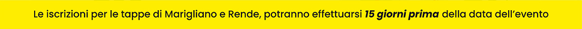 Le iscrizioni per le tappe di Marigliano e Rende, potranno effettuarsi 15 giorni prima della data dell'evento.