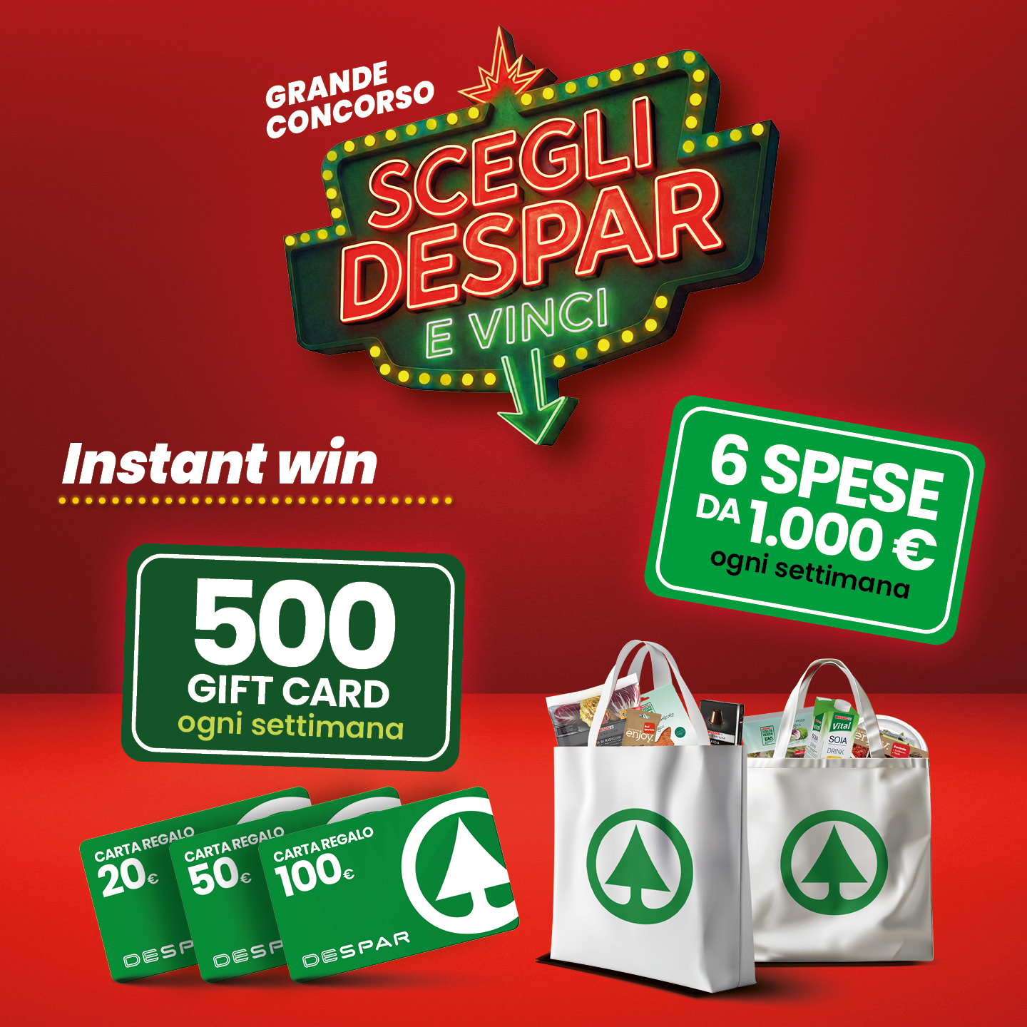 Tra i premi in Instant Win in palio ci sarà anche 1 spesa da 1.000€ ogni settimana.
